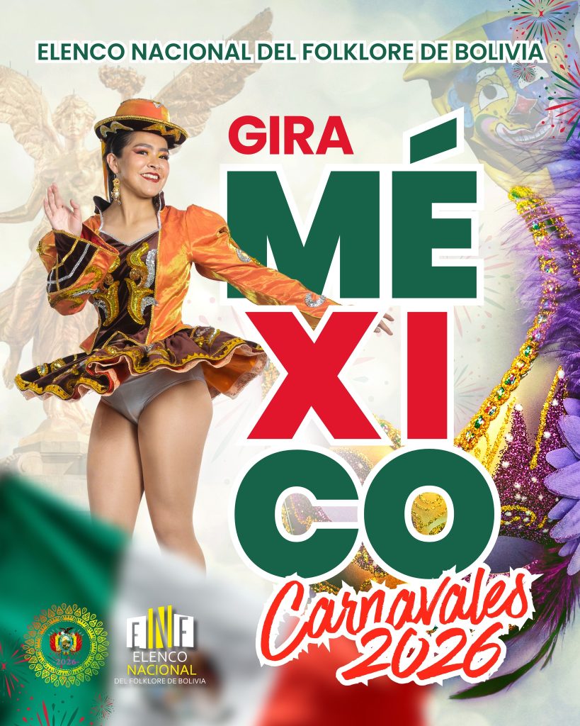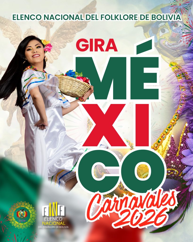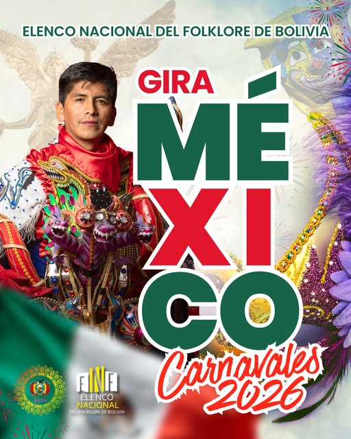 NIP y otras fuentes MX (6/02/26). El Elenco Nacional del Folklore de Bolivia cruza fronteras para realizar una gira artística y vestir a México con colores de la identidad boliviana. La noticia fue difundida en la publicación oficial de dicha institución artística.
