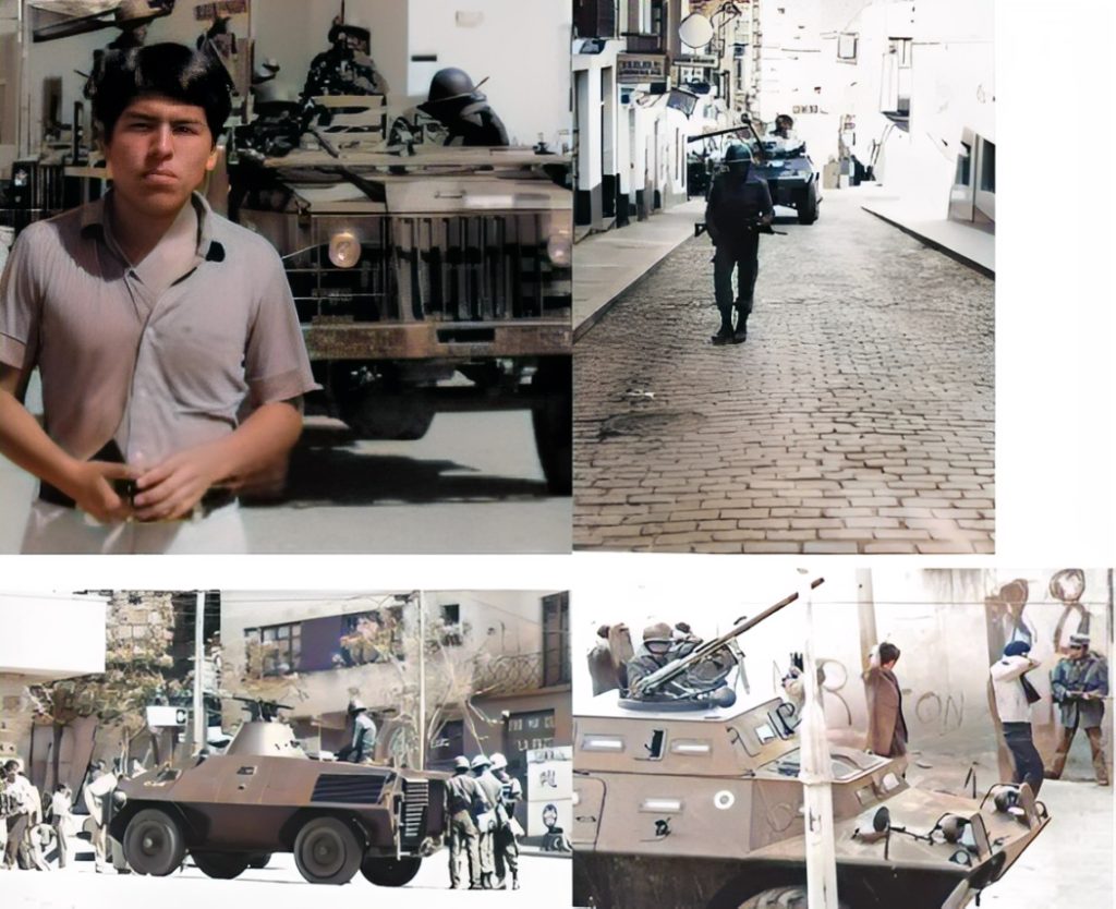 Con esa intención abandoné mi vivienda y en el trayecto observé lo inusual: soldados armados y trincheras en la plazuela Eguino, tanquetas y retenes en la Plaza San Francisco. Se respiraba un ambiente tenso en las calles aledañas a la Alameda Central. Era mediodía y un año antes la ciudad había vivido un sangriento Golpe de Estado (Alberto Natusch Busch) con más de un centenar de pérdidas humanas.